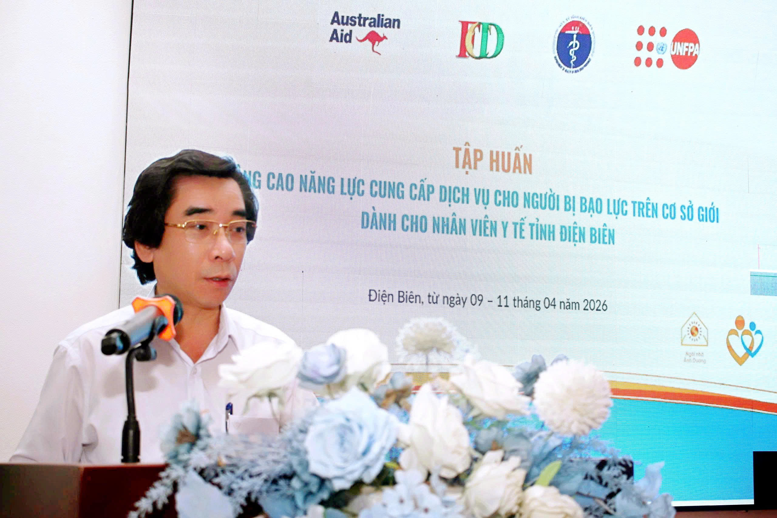 Đến dự lớp tập huấn có đồng chí Mai Hoàng Hà, Phó Giám đốc Sở Y tế tỉnh Điện Biên; đồng chí Tống Thị Hưởng – Phó Giám đốc Quỹ Phát triển cộng đồng tỉnh Điện Biên cùng các giảng viên và 32 học viên là cán bộ y tế, nhân viên công tác xã hội tại các bệnh viện và trạm Y tế xã, phường trên địa bàn tỉnh.